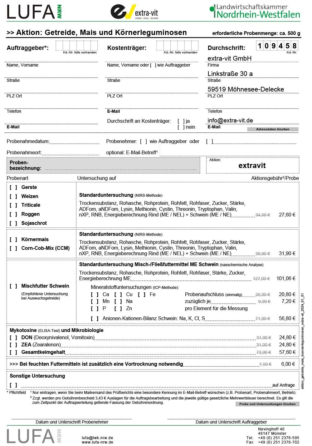 Gerne übernehmen wir das Ziehen und den Versand der Futterprobe für Sie – sprechen Sie unsere Mitarbeiter bei Interesse gerne an.